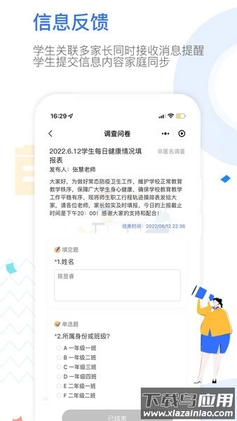 可以实时获取学校发布的各类通知与公告,同时支持通过手机端便捷提交学生的请假申请。