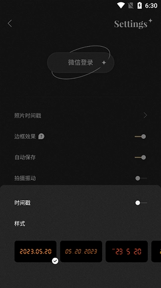 1、每个主题根据风格搭配不同的影片颗粒。时间水印。