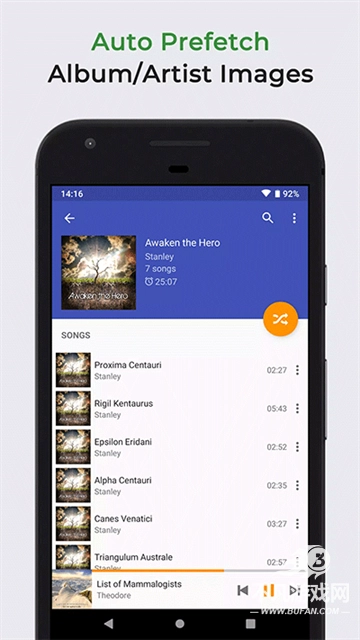 3. 自动和显示专辑艺术和艺术家的照片。