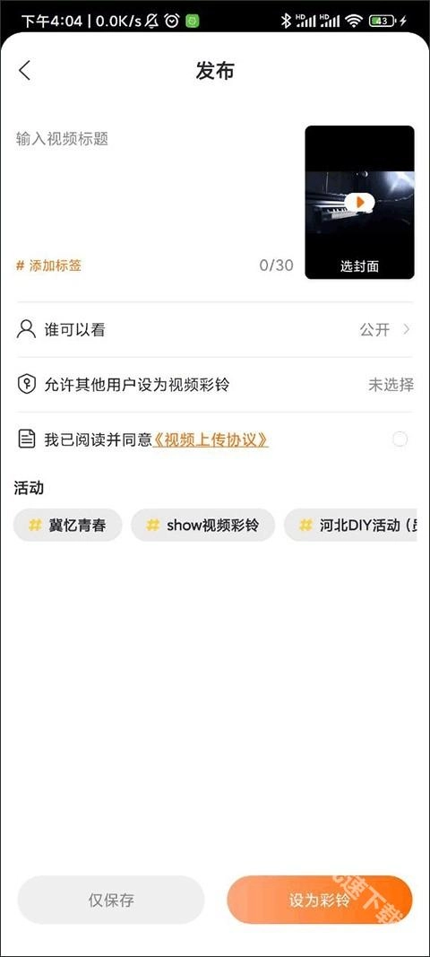 现在我们等待视频合成结束,填写一下视频标题还有一些隐私设置后根据自己的想法点击仅保存或者设为彩铃就行了。
