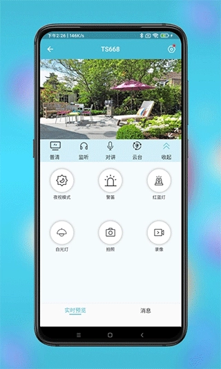 1、在安卓移动设备上实时查看监控画面,实现对家中或任意监控区域的即时预览。