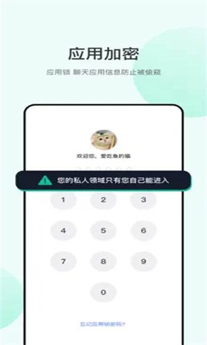3、应用锁:设置应用锁密码后,每次打开应用都得输入完整密码才能使用,这样可以避免聊天内容被其他人看到。