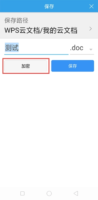 1、用户新建文档在保存时,界面中有「加密」选项,点击即可进行加密设置。