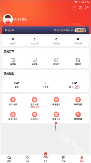 1、点击切换到【我的】页面,点击上方的“商家入驻”功能选项。