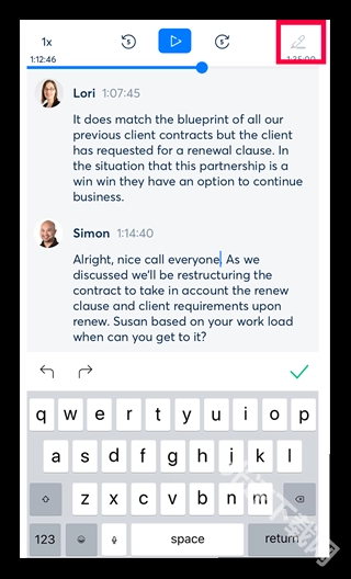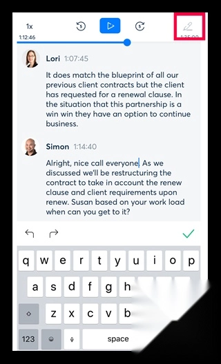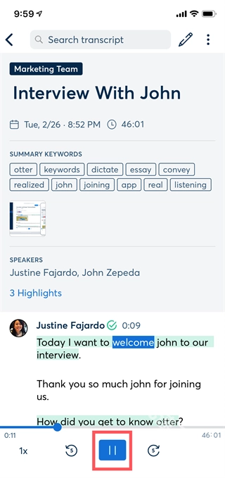 点击屏幕底部中央的图标以播放记录的数据并突出显示你正在阅读的单词,你还可以通过点击要播放的单词从任何点开始播放。