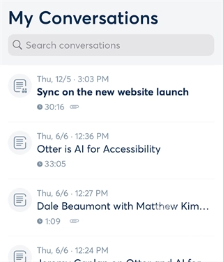 轻点“我的对话”以查看你自己的录音列表,点击标题以显示详细信息屏幕,你可以在其中查看文本或再次收听录音。