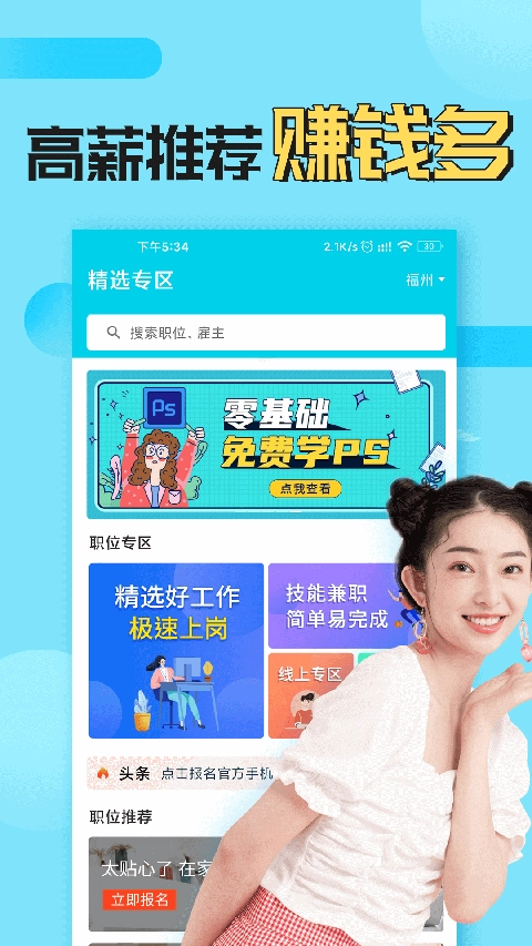 2. 实时更新兼职岗位,快速刷新最新岗位,找到合适的兼职岗位;