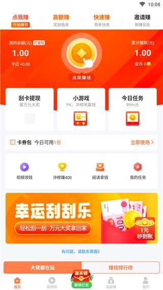 3、邀请好友领取现金:邀请好友捡光,好友刷一刷,现金奖励不限,新一天可提现。