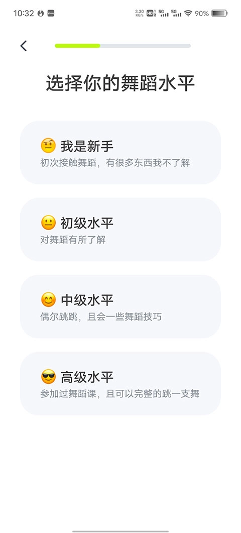 3、根据实际情况,选择自己的舞蹈水平。
