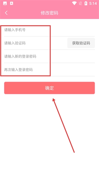 3、进入【修改密码】页面后,请按顺序填写【手机号】【验证码】【新登录密码】【再次输入登录密码】,待所有信息填写完毕,即可完成密码重置操作。