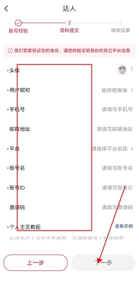 5、接下来填写各类基本信息,之后点击下一步查看审核结果就可以了。