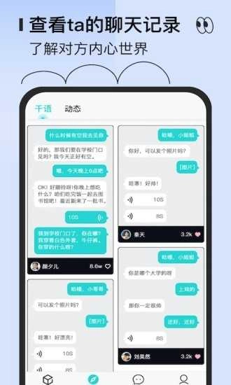 千语千寻——国内首个以「公开聊天记录」作为社交切入点的走心交友平台,不依赖照片比拼颜值、不借助标签塑造人设,而是让你通过真实对话去读懂一个人的灵魂,精准匹配那些志趣相投、回复积极、三观契合的有趣灵魂。