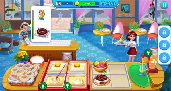 1、打开“我爱做饭”应用,进入餐厅界面后,先查看食材摆放的区域,接着确认要制作的餐品类型,然后准备选取相应的食材来开始制作。