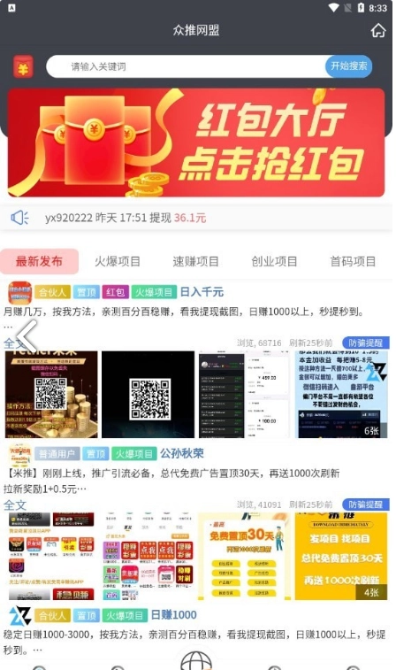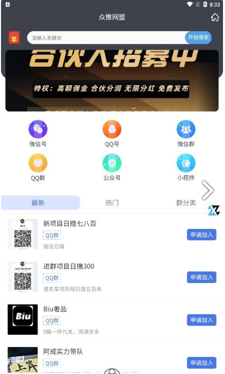众推网盟是个提供兼职机会的服务平台,想做兼职的时候随时都能来这儿找活干,每天都有不一样的兼职信息更新。每完成一单任务就能拿到不少奖励,特别适合宝妈和宅男群体。通过搜索关键词就能找到对应的兼职信息,平台很靠谱,而且兼职任务操作起来都挺简单的。