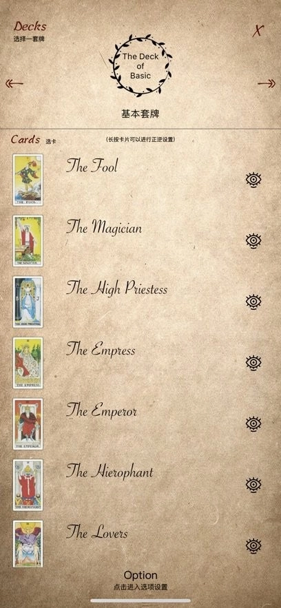 1、塔罗方面:新添了转盘选牌的模式,还增加了4个新的牌阵,另外也补充了月牌这一内容。