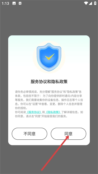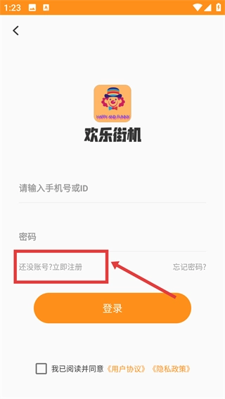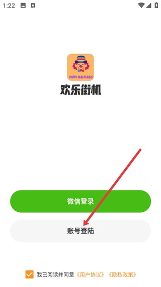 阅读《服务协议》和《隐私政策》的条款后,点击弹窗里的【同意】按钮,即可进入“欢乐街机”的登录选择界面。
