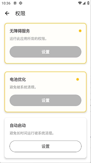 1、启动秋华拳头版应用,同意用户协议,依据指引开启无障碍服务以及悬浮窗权限。