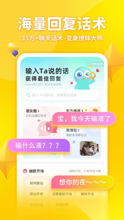 35万条以上聊天话术资源,搜索对方语句,复制粘贴即可回应,让交流更顺畅;