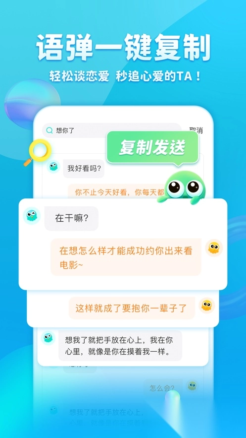 4拥有四万多条土味情话素材库,通过智能方式引导用户一步步靠近心仪的对象。