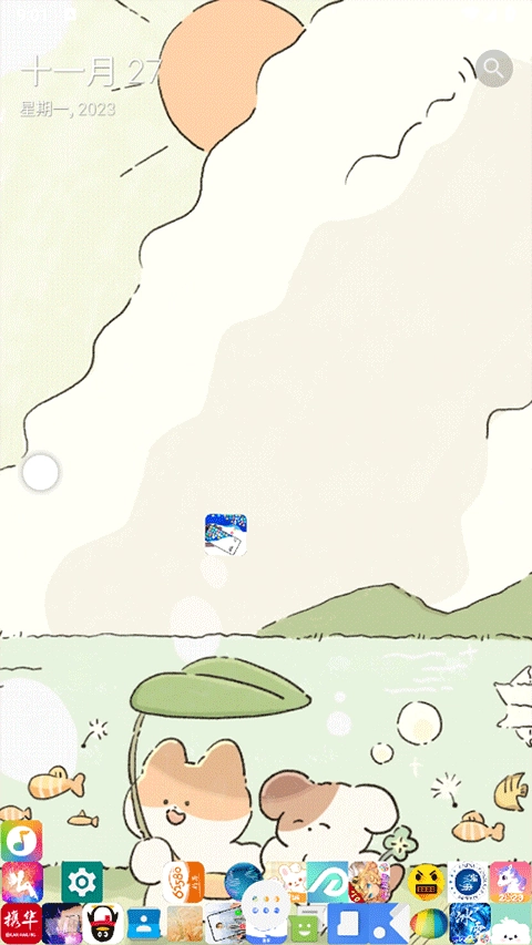回到手机桌面,就能看到新壁纸已经设置好了,图标还会滚动碰撞。
