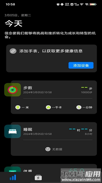 这款应用专为Dare系列智能健身手表打造,可精准追踪用户的步数、行走里程、卡路里消耗及睡眠时长等各类运动健康数据,助力用户更科学、直观地进行日常健康管理。