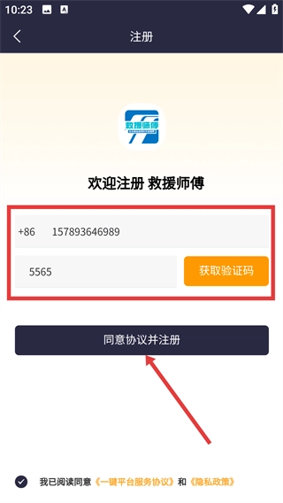 3、进入注册界面后,依次填写【手机号】、获取并输入【验证码】,勾选相关协议,最后点击【同意协议并注册】按钮,即可完成账号的创建。