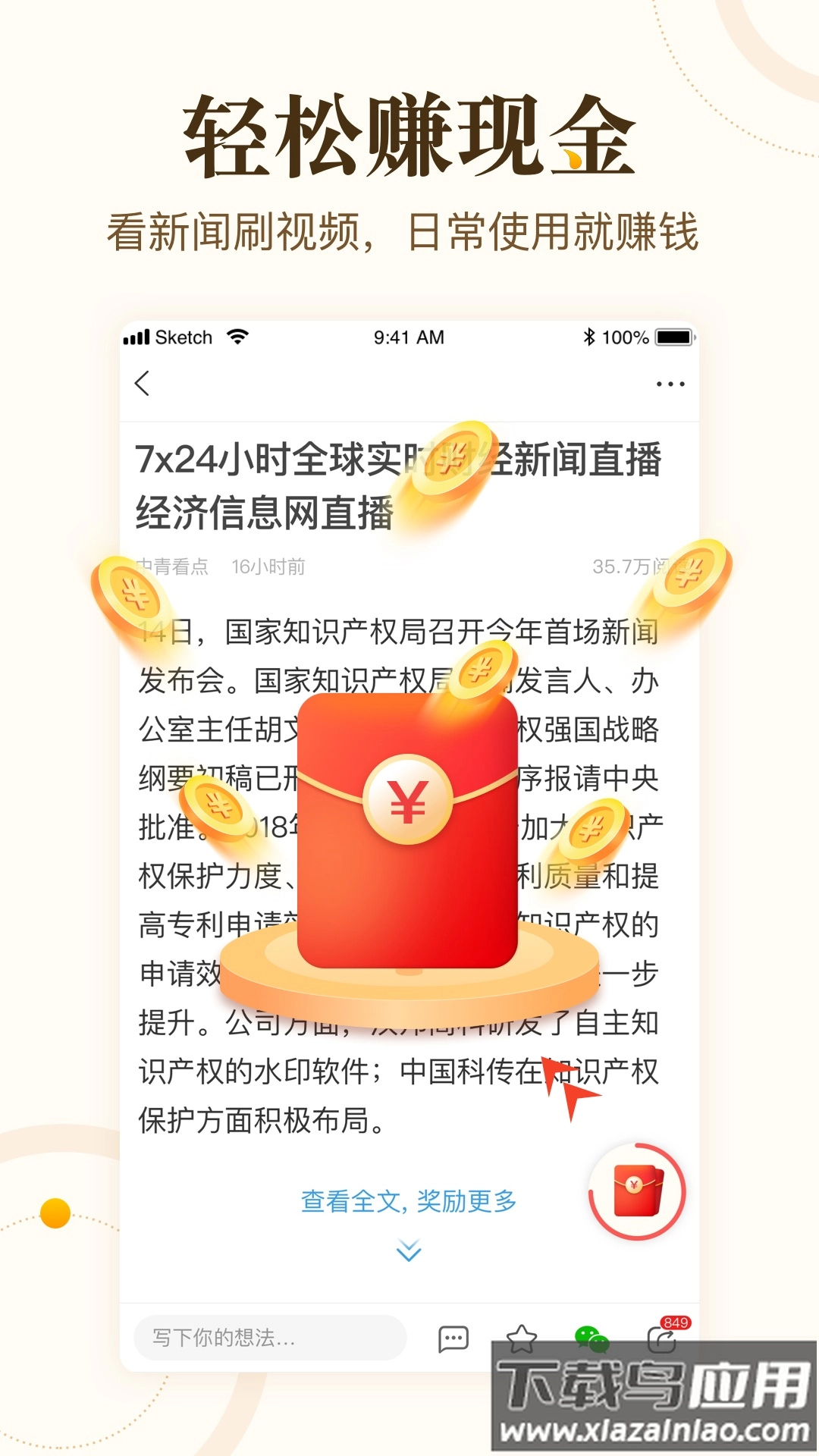 中青看点是当下颇受青睐的资讯类软件,用户只需阅读资讯或观看视频就能获取收益。新用户登录即可领取现金红包,日常浏览资讯、刷视频还能持续赚取奖励,操作简便易上手,很适合在空闲时间参与。