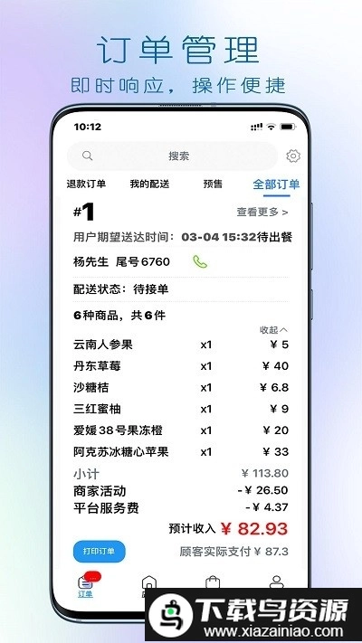 2、新订单详情会实时推送提示,助力商家快速处理订单,及时跟进客户需求;