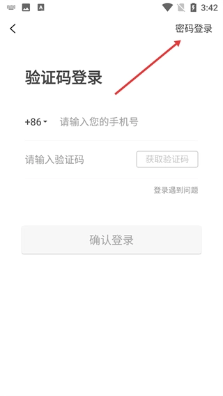 2、进入登录方式选择页面后,点击【密码登录】选项卡,即可切换到密码登录的表单界面。