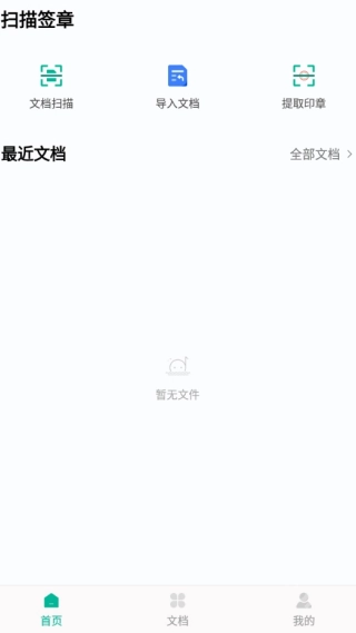 1、打开扫描签章App的首页,能看到文档扫描、导入文档以及提取印章等功能选项。