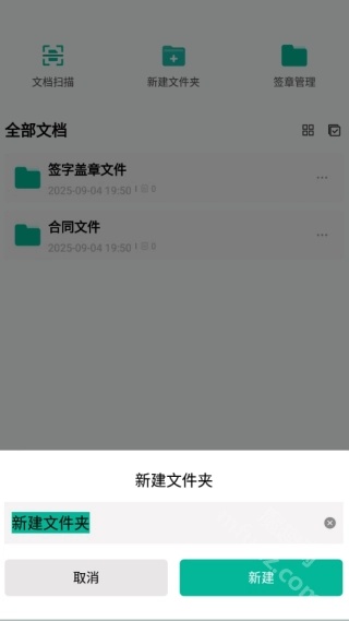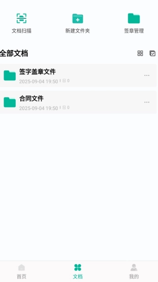 2、文档模块支持快速扫描文档,还能进行签章管理以及新建文件夹。