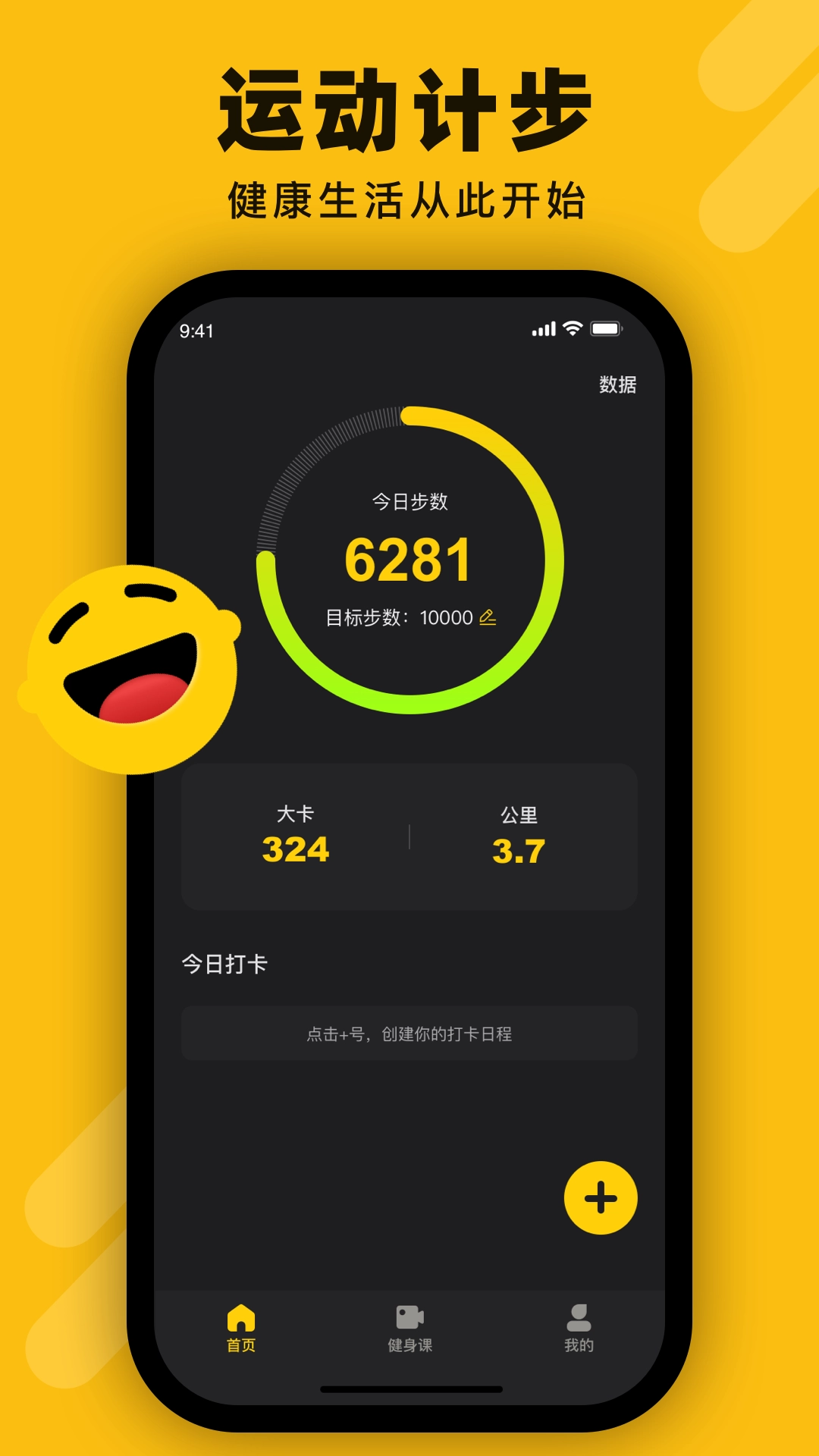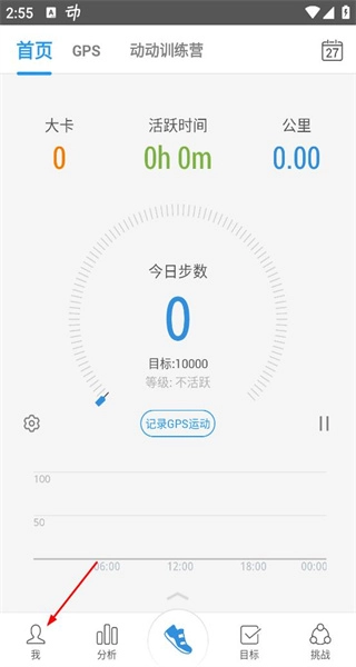 1、首页呈现大卡活跃时间、公里数等数据,底部导航栏设有“我”的图标,点击该图标即可进入个人相关页面。