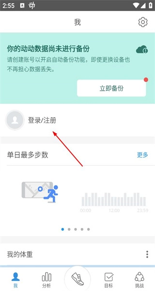 2、我页面提示动动数据未备份,有登录注册选项,点击该选项可进入账号创建或登录页面。