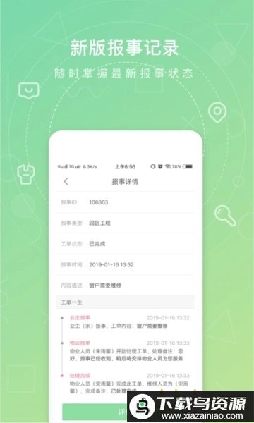 2. 物业报事功能:允许用户在线提交报修请求,报修处理的全流程进度可实时查看,确保过程公开透明。