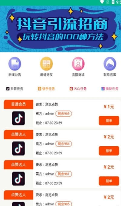 这个平台可快速增加快手、抖音的粉丝数量,还能提升名片点赞数、空间人气,以及全民K歌的播放量和人气等,操作便捷且安全可靠。用户接到订单并完成任务,经审核通过后就能获取收益;此外,若邀请好友参与完成任务,还能额外获得30%的佣金奖励。小编在此仅做分享,提醒大家涉及资金交易时务必谨慎辨别!
