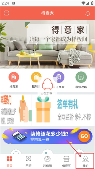 1、打开【得意家】首页,点击底部的【我的】按钮,即可进入个人中心页面,在这里可以使用更多后续功能。