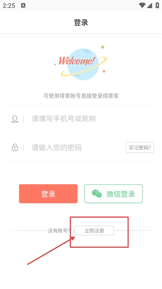 3、在登录页面,若您尚未拥有账号,可点击【立即注册】按钮进行账号注册,也能选择【微信登录】这一方式来快速完成登录流程。