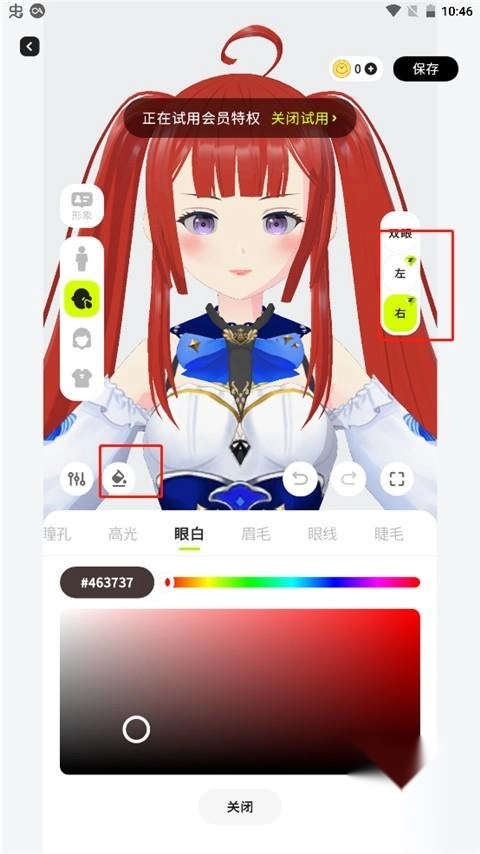 4、点击颜料桶可更换眼瞳颜色。