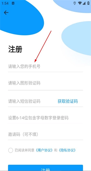 4、进入注册页面后,按顺序填写手机号、验证码等所需信息,接着设置登录密码,即可完成账号注册的全部流程。