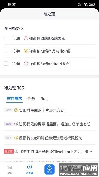 5. 待办管理:对个人待办事项进行管理,可在移动端实现待办的完成或激活操作;