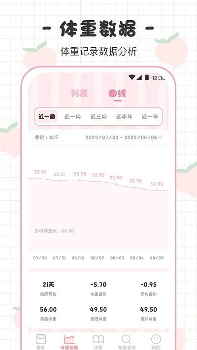 4. 软件具备数据统计功能,可协助用户分析体重的变化趋势
