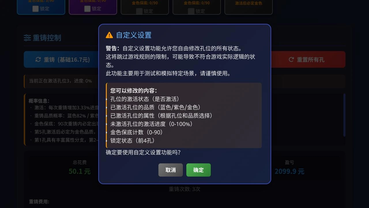 3、自定义设置提供“极限属性流”和“性价比流”两种策略选项,可适配不同玩家的个性化需求。