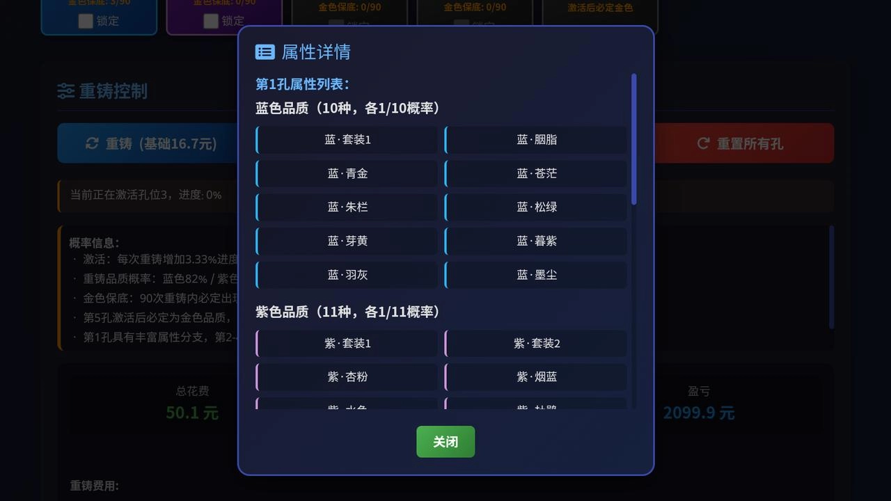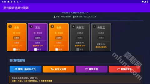 A:误差仅存在于金色孔的保底范围(25到44手之间),这属于游戏的随机机制范畴,并非软件本身的问题;只要准确选择「武器品类 + 孔位锁定数量」,软件提供的基础材料消耗数据就会与游戏完全同步,精准度极高,所有偏差均处于合理区间内。