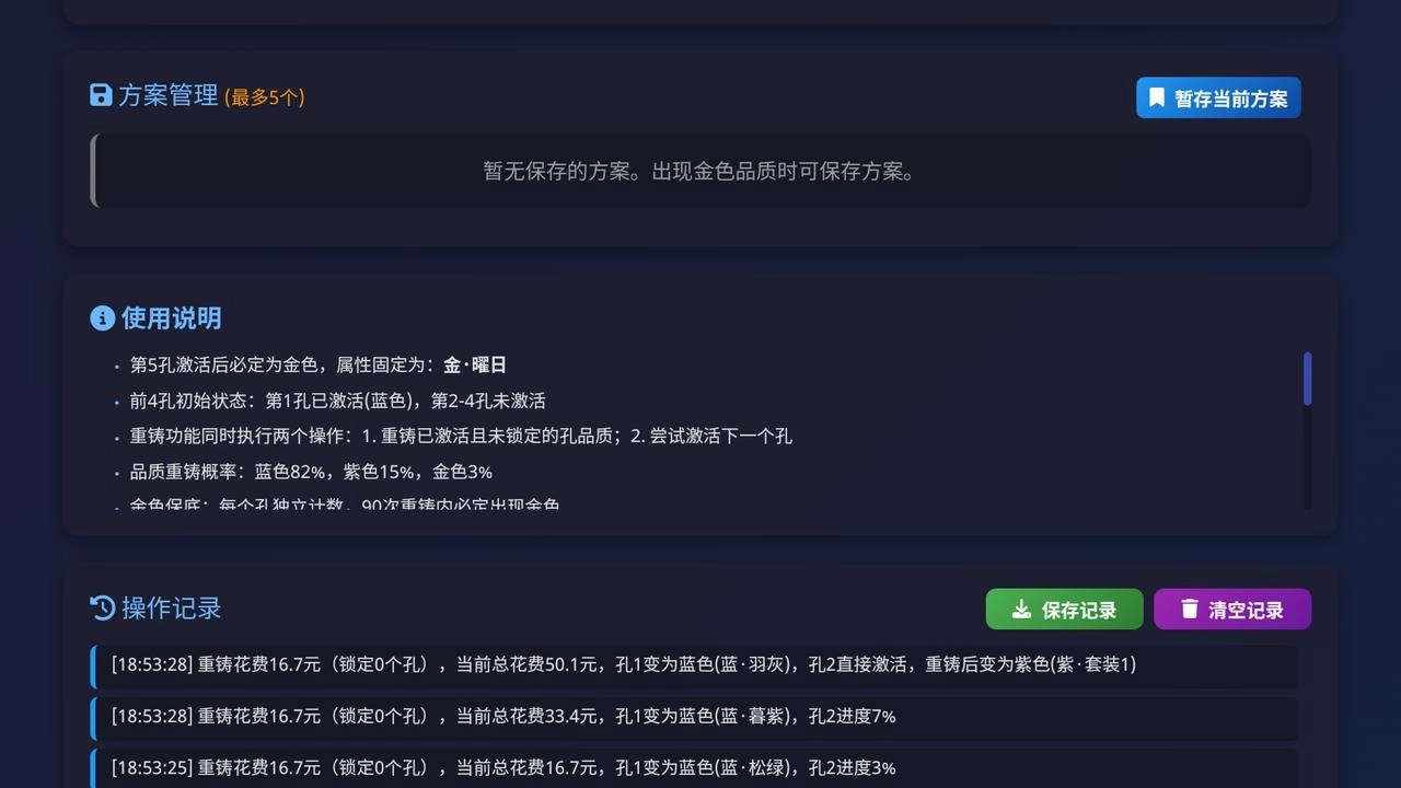 A:这属于游戏的隐藏机制,并非软件故障。恢复旧方案时会一并同步当时的保底次数,建议等所有孔位都解锁后再恢复方案,这样就能避开这个问题,软件也会在页面上标注相关细节进行提醒。
