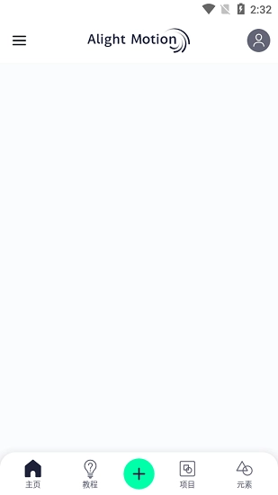 1、启动Alight Motion剪辑软件,点击屏幕底部中央的+按钮;