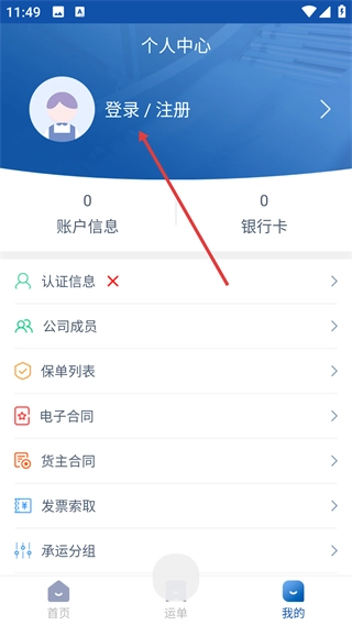 1、在【个人中心】页面,点击【登录/注册】选项,进入账号登录界面,后续可进行账户信息完善等相关操作。