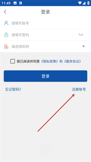 2、在【登录】界面,若您还没有账号,可点击【注册账号】选项,进入账号注册流程并填写相关信息。