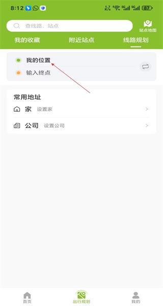 4、进入出行规划页面后,你可以选择自己当前的位置并输入目的地,还能设置常用地址,这样能更方便地规划出行路线。