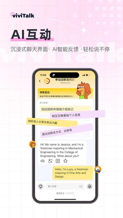 AI能以不同角色和你实时对话,既支持语音输入也支持文字输入,交流起来自然又真实,让你可以随时随地练习开口表达。