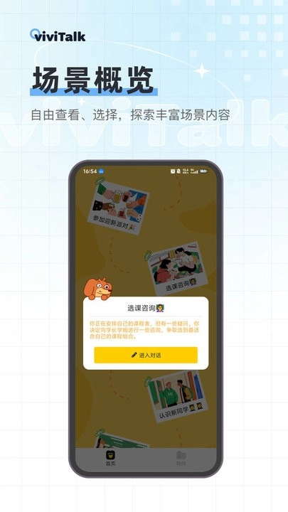viviTalk是一款围绕AI场景对话打造的沉浸式口语训练应用。它借助真实且有趣的生活与职场情境,助力你在“敢于开口、懂得表达、发音准确”的进阶中全方位提升口语水平。不管是出国旅行、商务洽谈,还是日常表达练习,viviTalk都能充当你身边的智能口语指导教练。